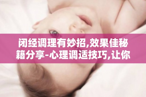 闭经调理有妙招,效果佳秘籍分享-心理调适技巧,让你轻松应对月经问题