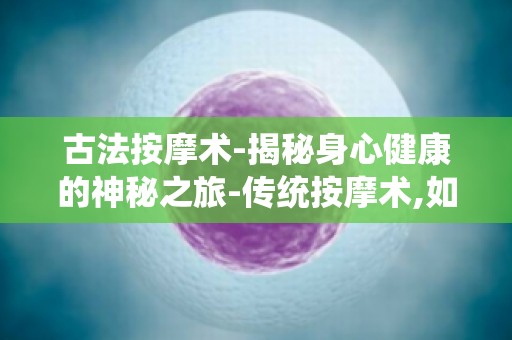 古法**术-揭秘身心健康的神秘之旅-传统**术,如何缓解现活压力