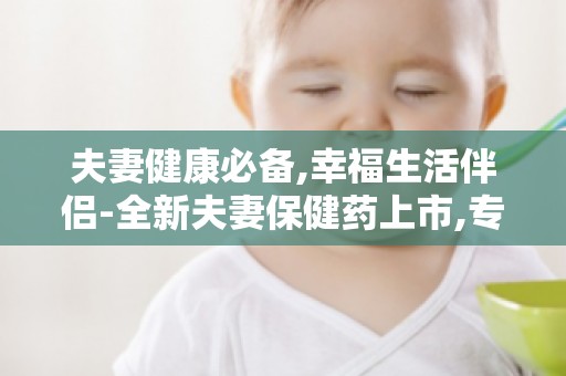 携手共度健康时光-夫妻保健药全新上市,幸福生活必备良药!